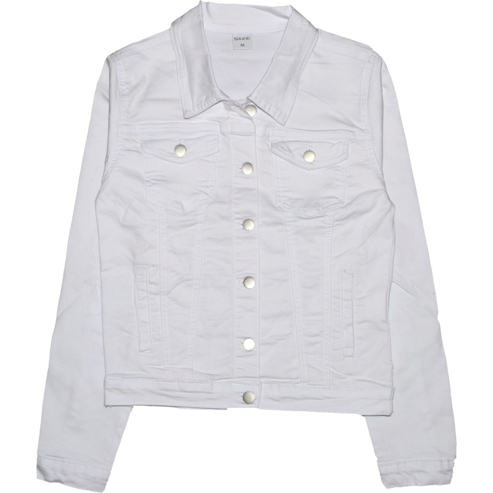 Fehér színű, koptatásmentes női farmerdzseki.