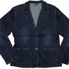 Hagyományos fazonú, női sztreccs farmerblézer.