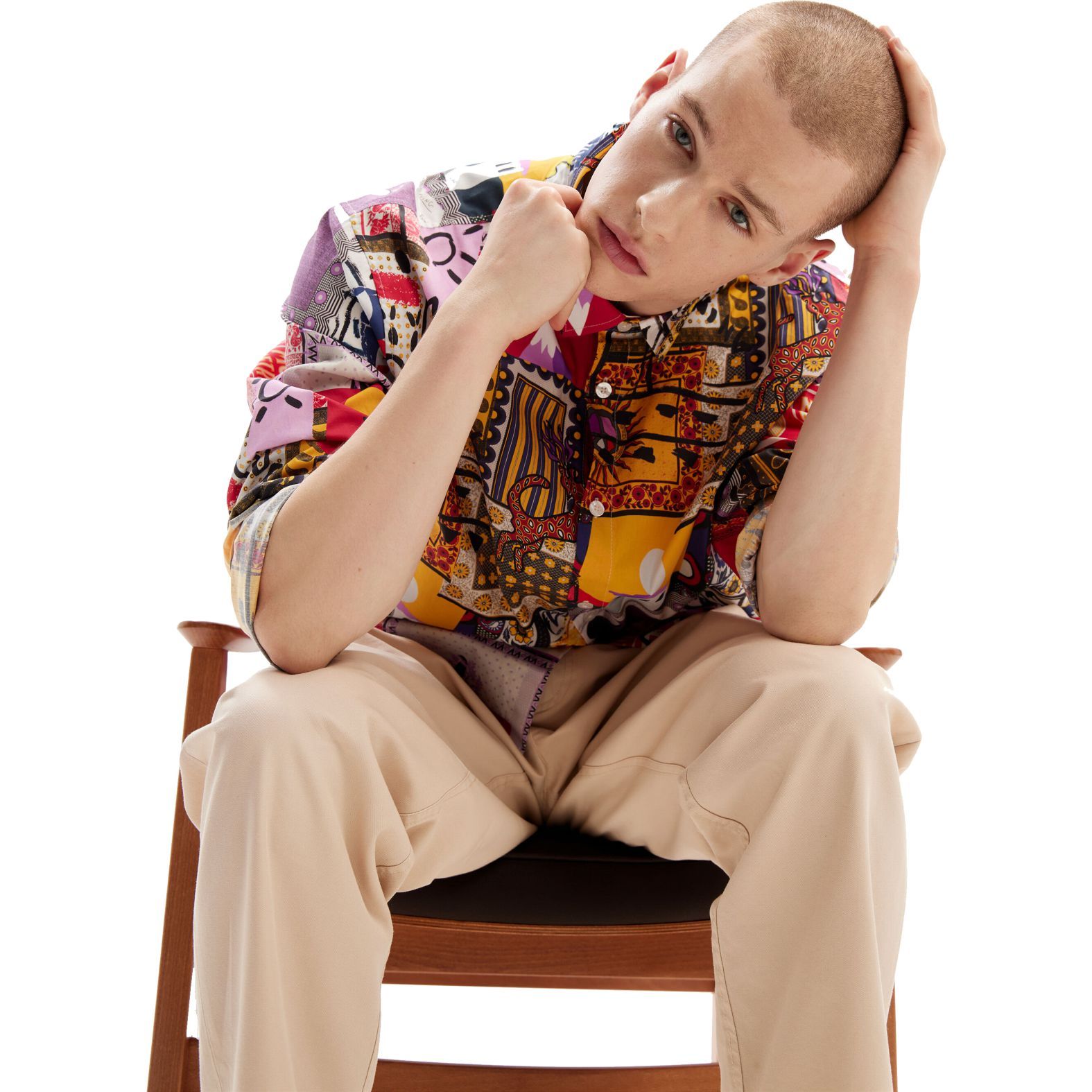 Hosszú ujjú ing pamut poplin anyagból, sokszínű 'Patchwork' mintával és cikcakkos varrás részletekkel.