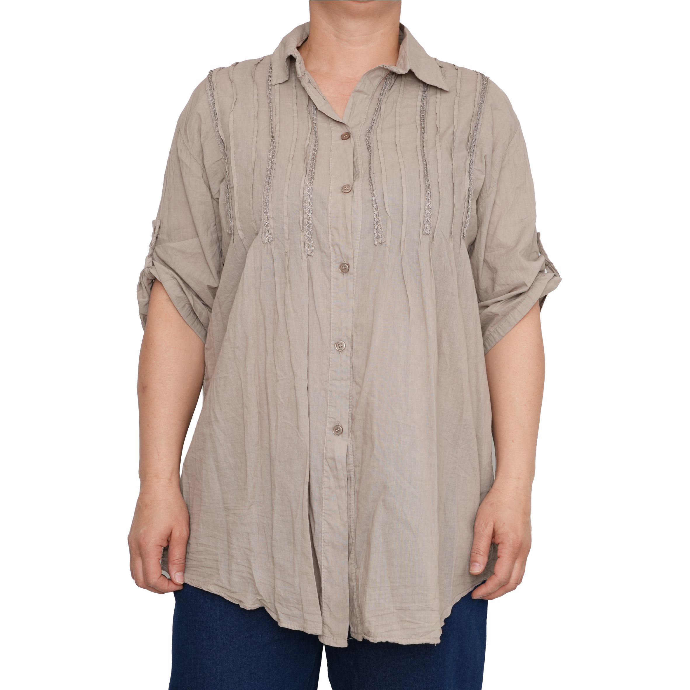 100% természetes, laza szövésű pamutalapanyagból készült ing.