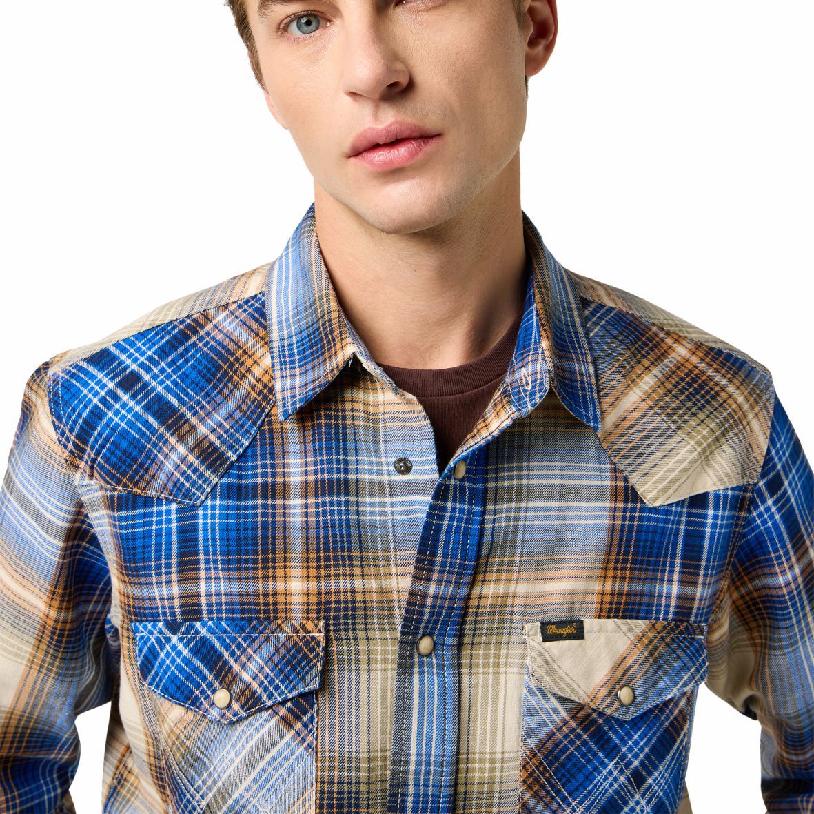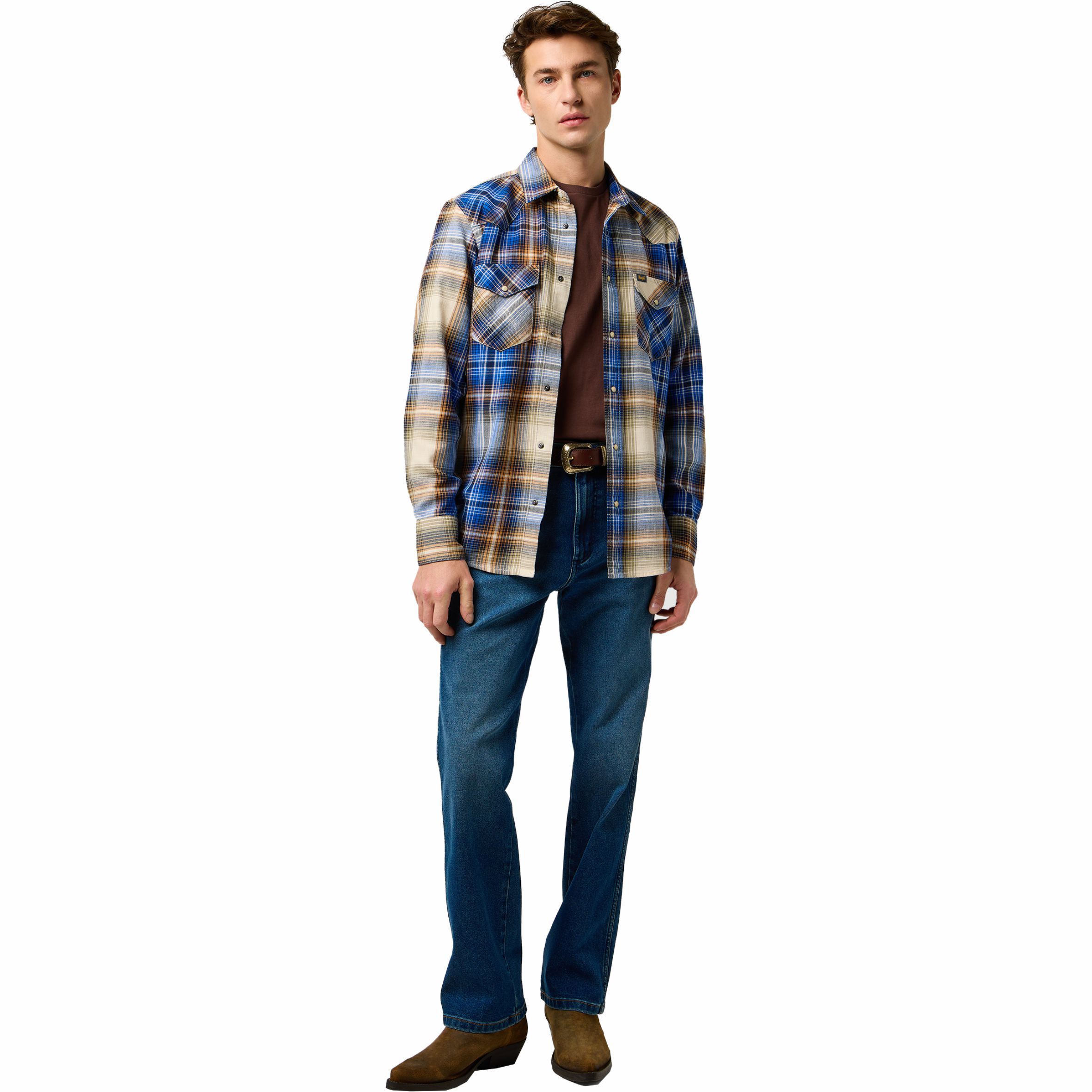 Wrangler® 112371431 Premium Regular Western Indigo Shirt Blue Brown