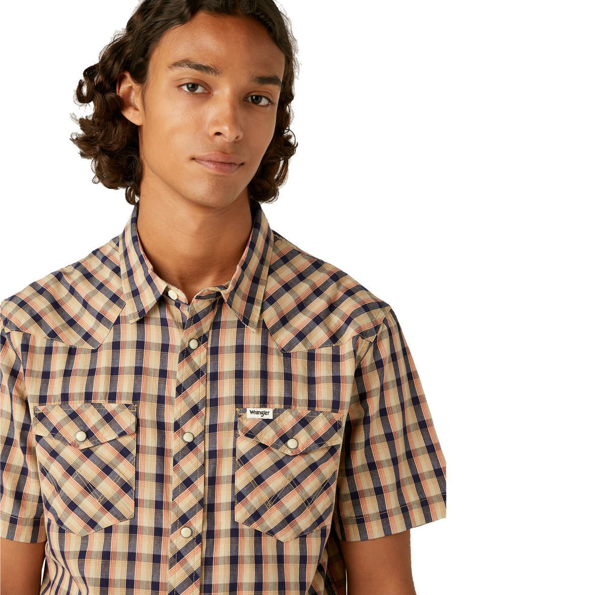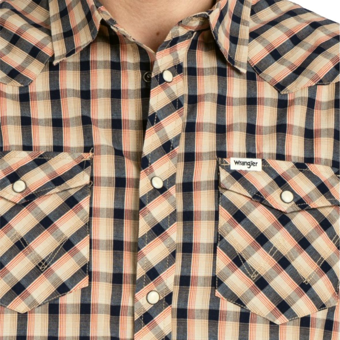A Wrangler® SS Western Shirt Tobacco Brown W5H84M81A rövid ujjú ing az eredetiséget igazoló címkékkel és a mindkét zseben megtalálható jellegeztess "W" varrással készült.