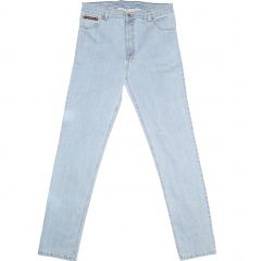Puha és rugalmas egyszerre. Klasszikus fazonjára jellemző, hogy emelt derékrésszel és szűk, egyenes szárakkal készült. Csak avatott, teljesen egyszínű, tehát sem foltos koptatás, sem gyűrődés nem „díszíti”.