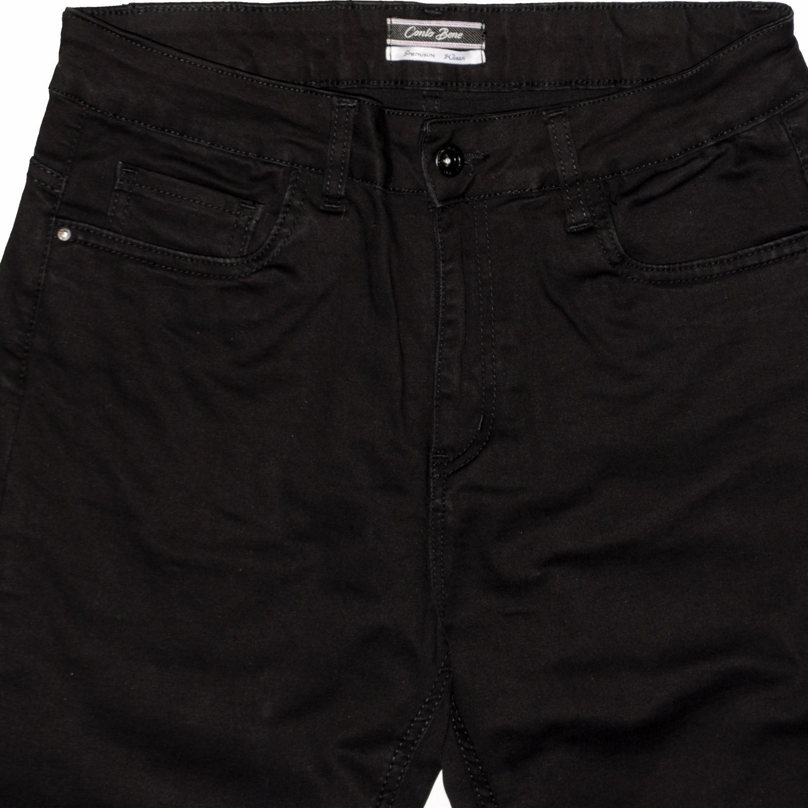 Klasszikus egyenes fazonú női fekete sztreccs farmernadrág.