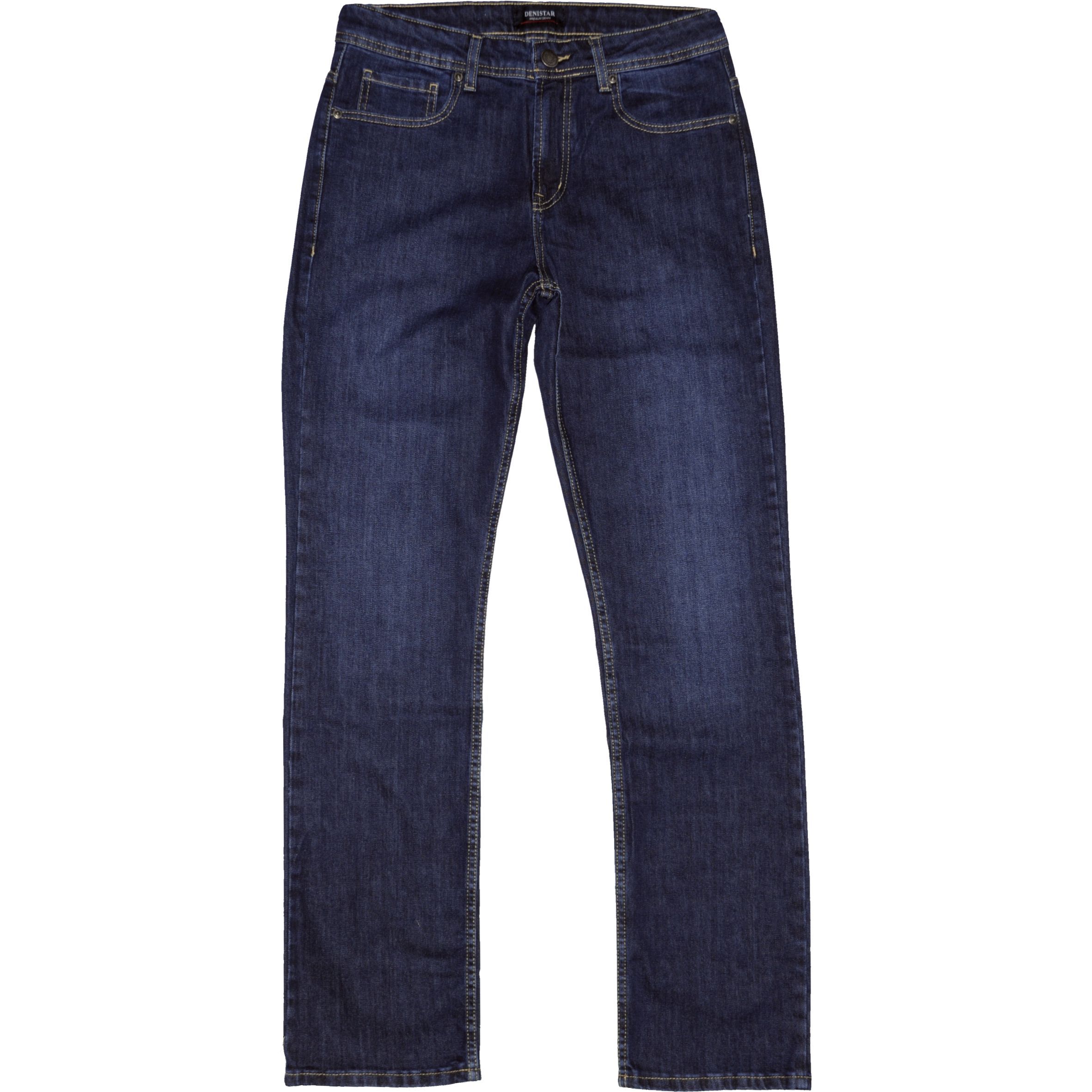 Klasszikus egyenes szárú farmernadrág minőségi sztreccs denim alapanyagból.