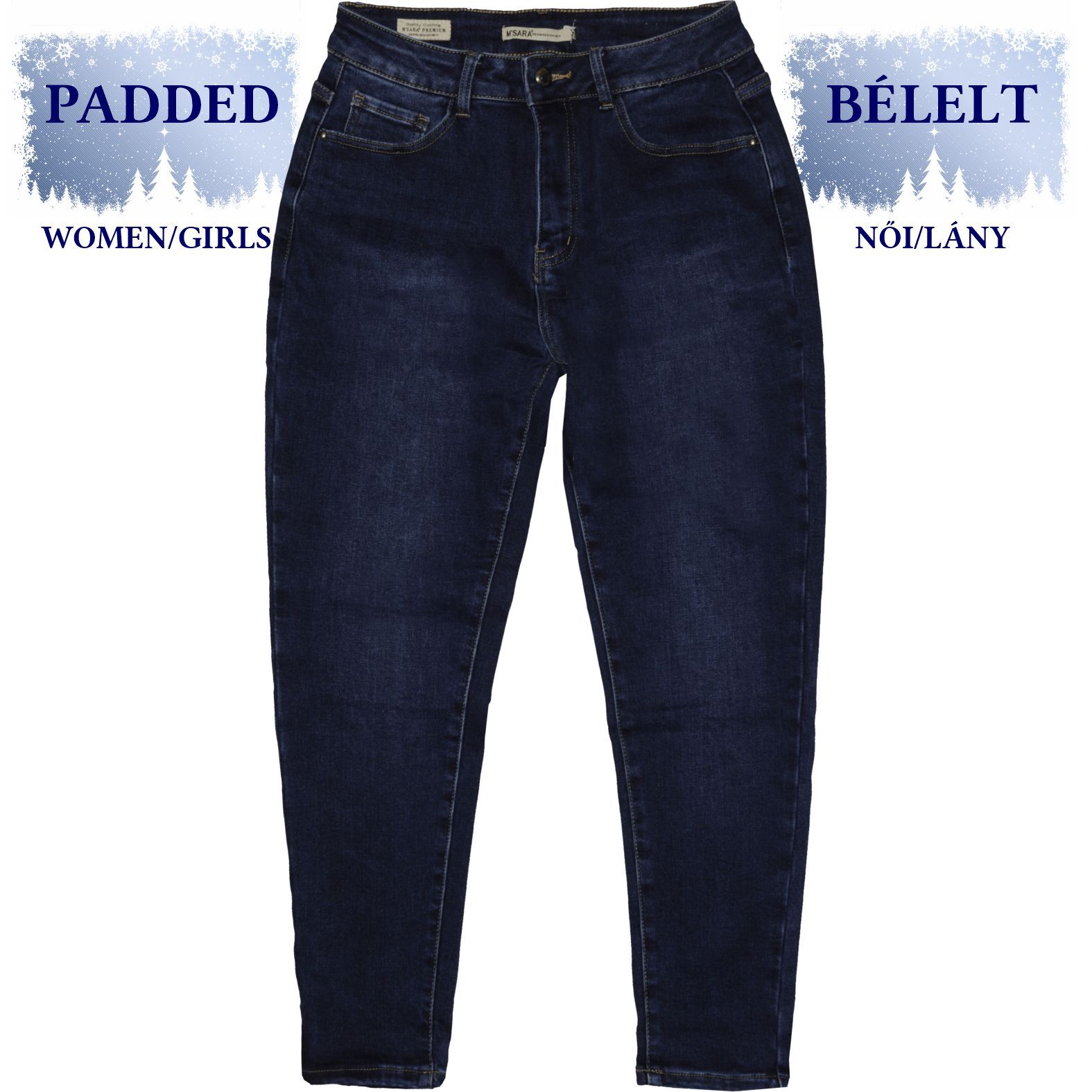 Különlegesen rugalmas alapanyagból készült bélelt női farmernadrág.