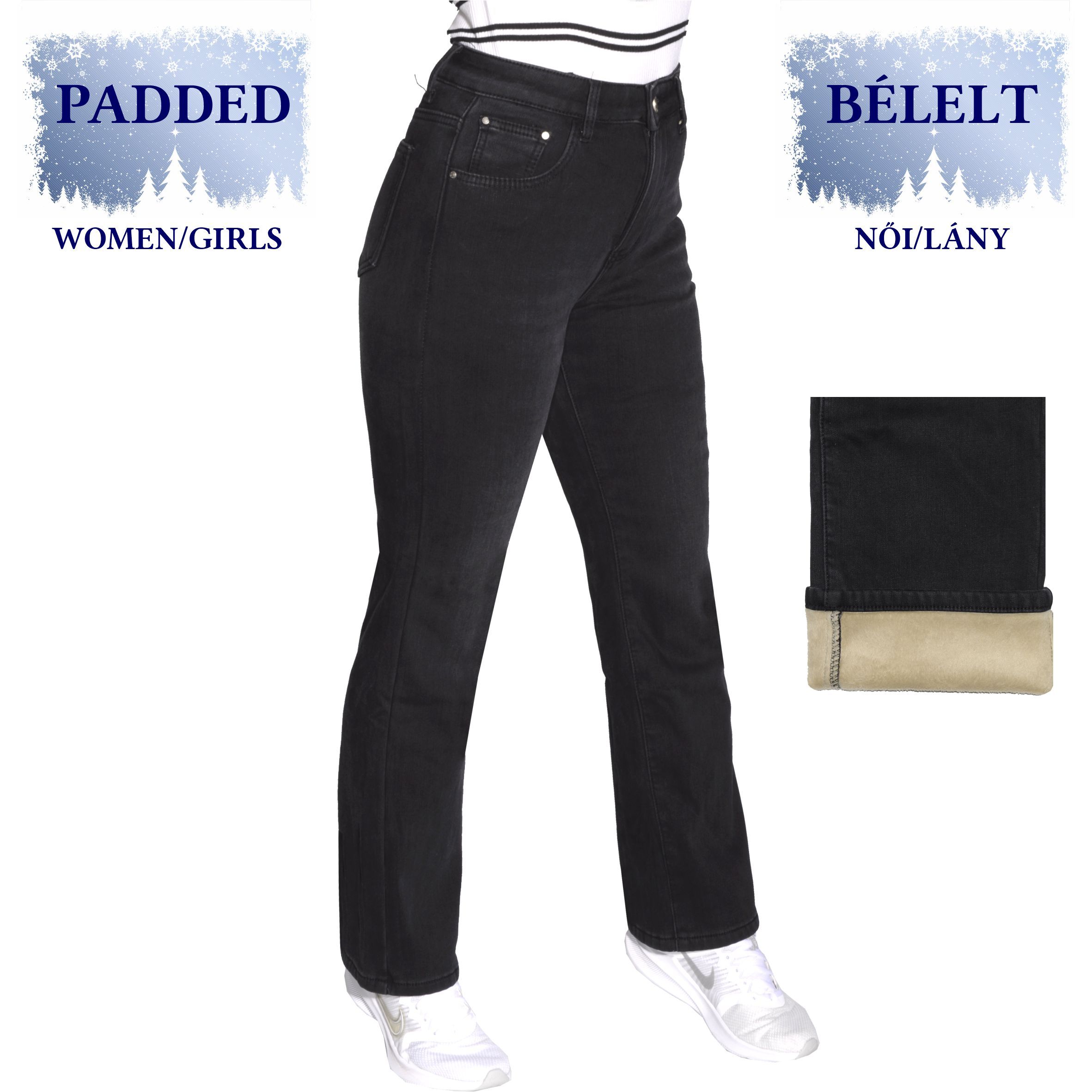 Extra vastag plüss béléssel készült trendi bő szárú női farmernadrág.