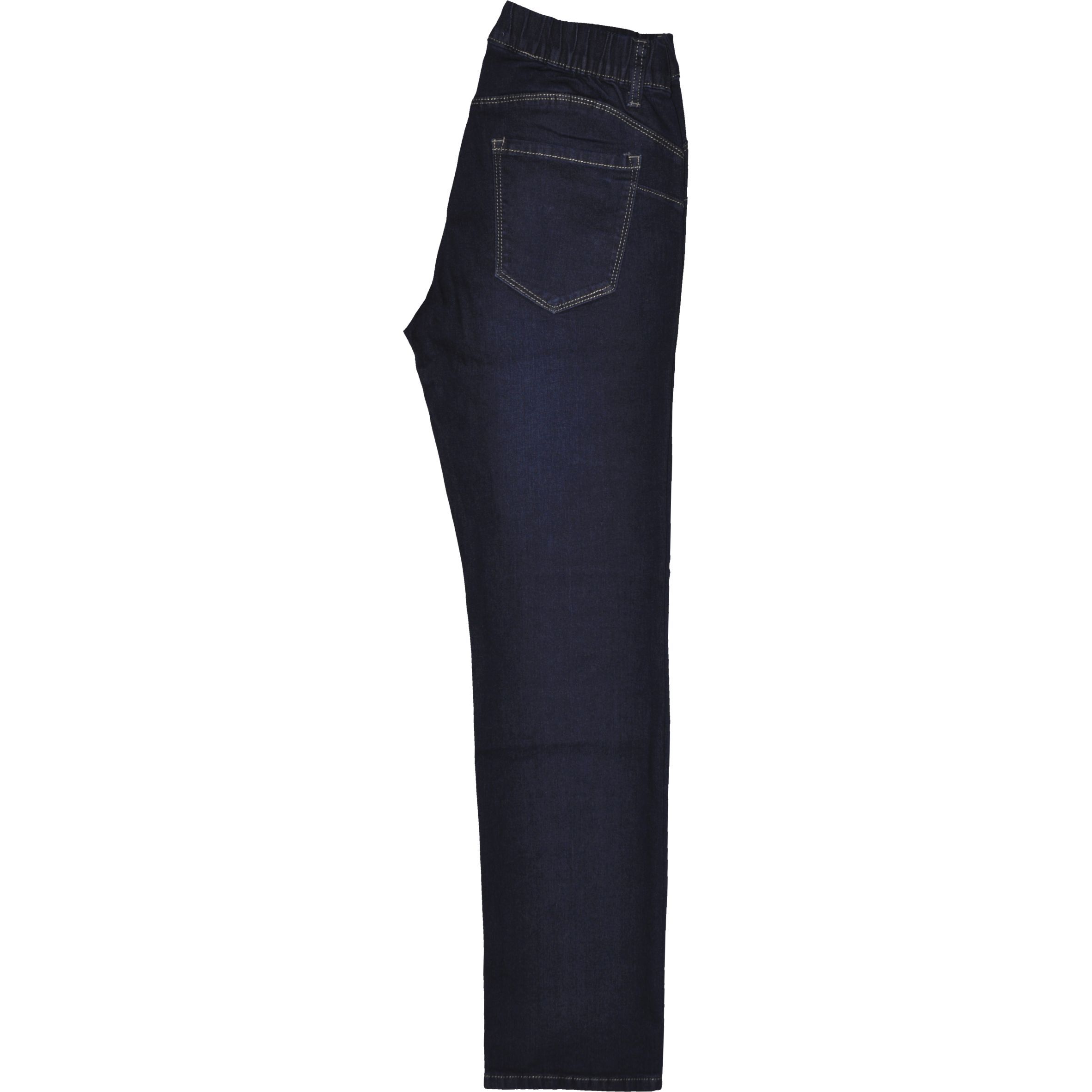 Különleges mélykék árnyalatú körgumis derekú női farmernadrág.