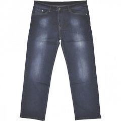 Szál-koptatott, sztreccses alapanyagú (67% pamut, 3% lycra, 30% poliészter) férfi farmernadrág. Ajánljuk mindazoknak, akik egy kényelmes, könnyű, sportos viseletet szeretnének. Klasszikus jeans kinézetű, enyhén koptatott modell. Ötzsebes, amelyek elöl szegecsekkel erősítettek. Enyhén magasított derékkal és egyenes szárral készült. Cipzáros záródású.