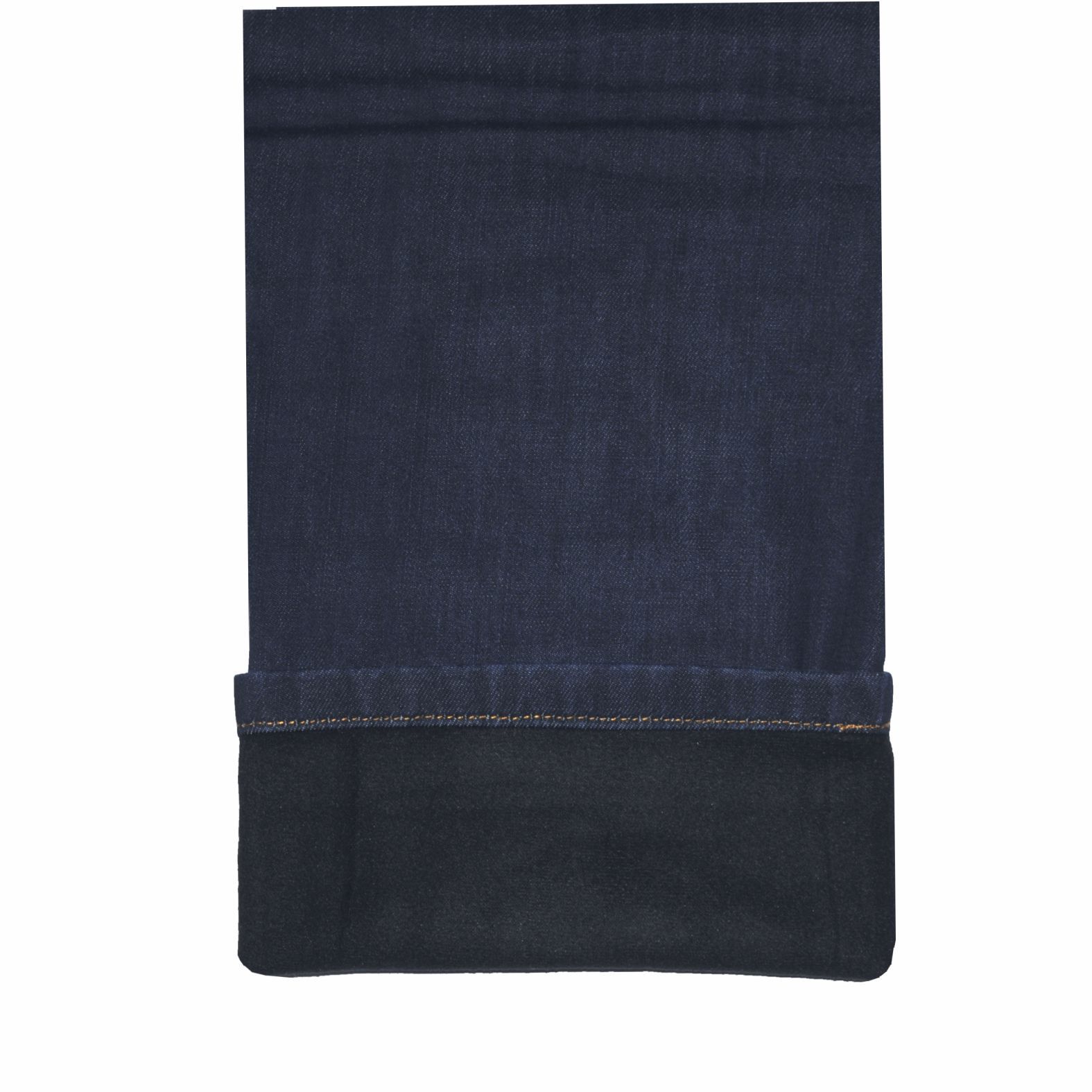 Dupla falú, speciális eljárással készült rugalmas alapanyaga kívül szál-koptatott denim, belül fekete bolyhozott thermo béléssel.