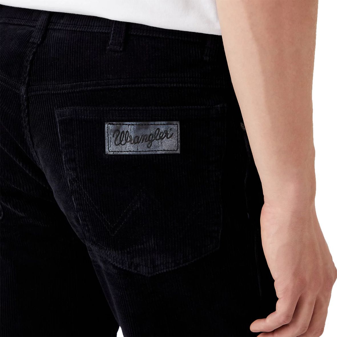 A letisztul Wrangler® Texas 821 Black Overdye Authentic Stretch fekete, koptatásmentes avatással, fekete tűzésekkel a védjeggyé vált "W" hátsózsebekkel, valamint az eredetiséget igazoló bőr logóval készült.