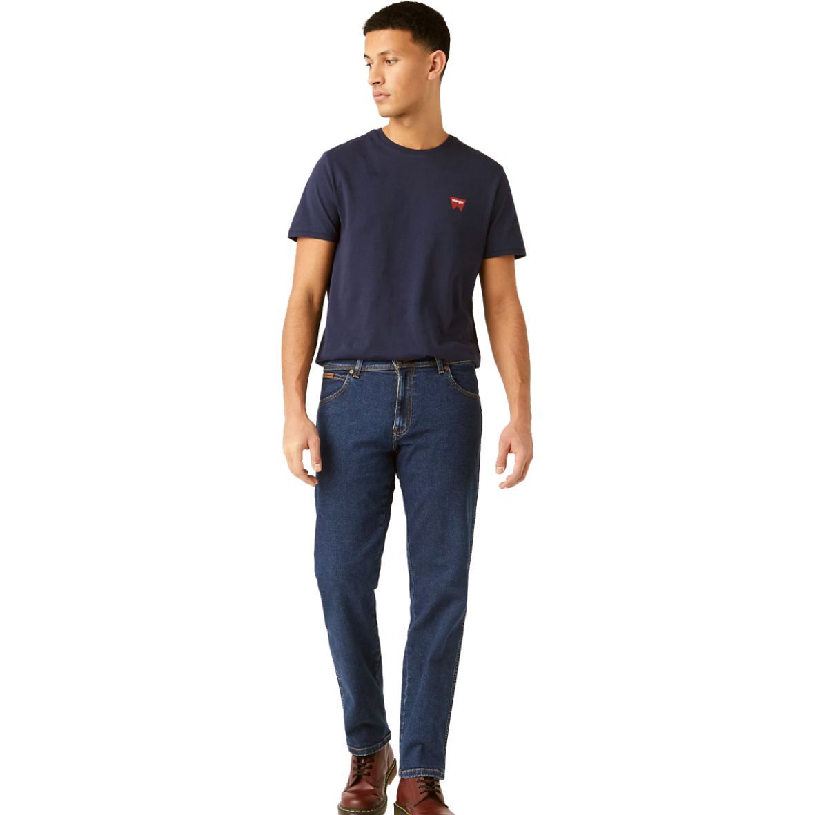 A letisztul Wrangler® Texas 821 DB Authentic Stretch Galileo W121OAR24 mélykék koptatásmentes avatással, narancssárga tűzésekkel a védjeggyé vált "W" hátsózsebekkel, valamint az eredetiséget igazoló bőr logóval készült.