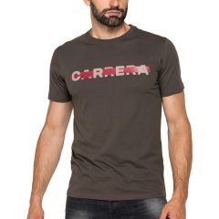 A Carrera® Jeans Crew Neck T-Shirt In Cotton Black Olive 801B0045A53L modellje rövid ujjú, kerek nyakú, normál szabású férfi póló barna alapszínben.