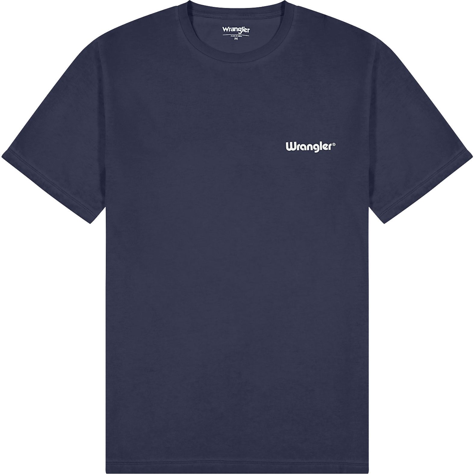 A Wrangler® Logo Tee Navy 112350524 egy egységesen sötétkék alapszínű kerek nyakú póló.