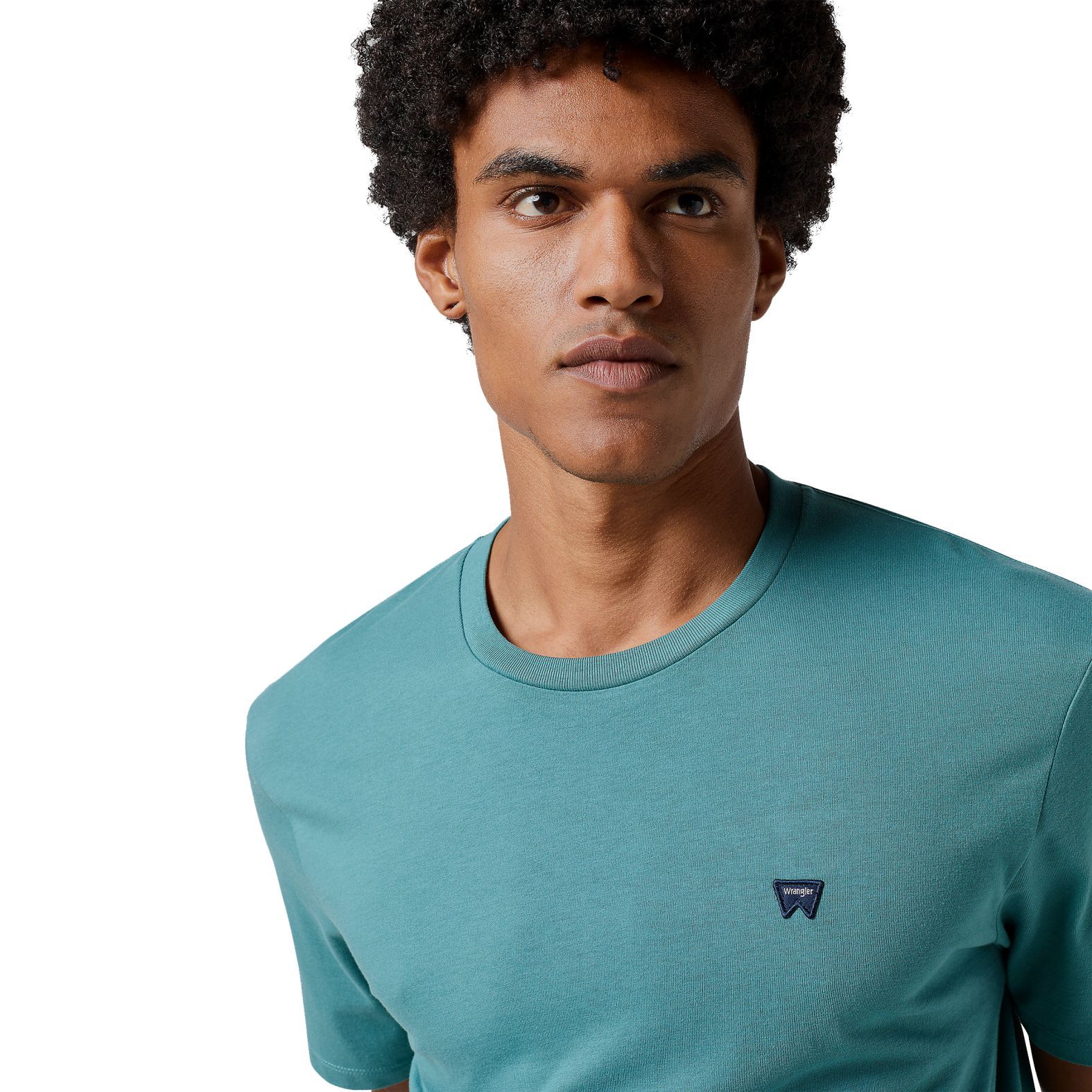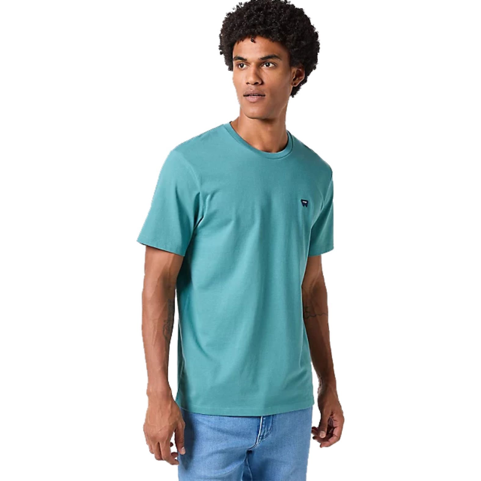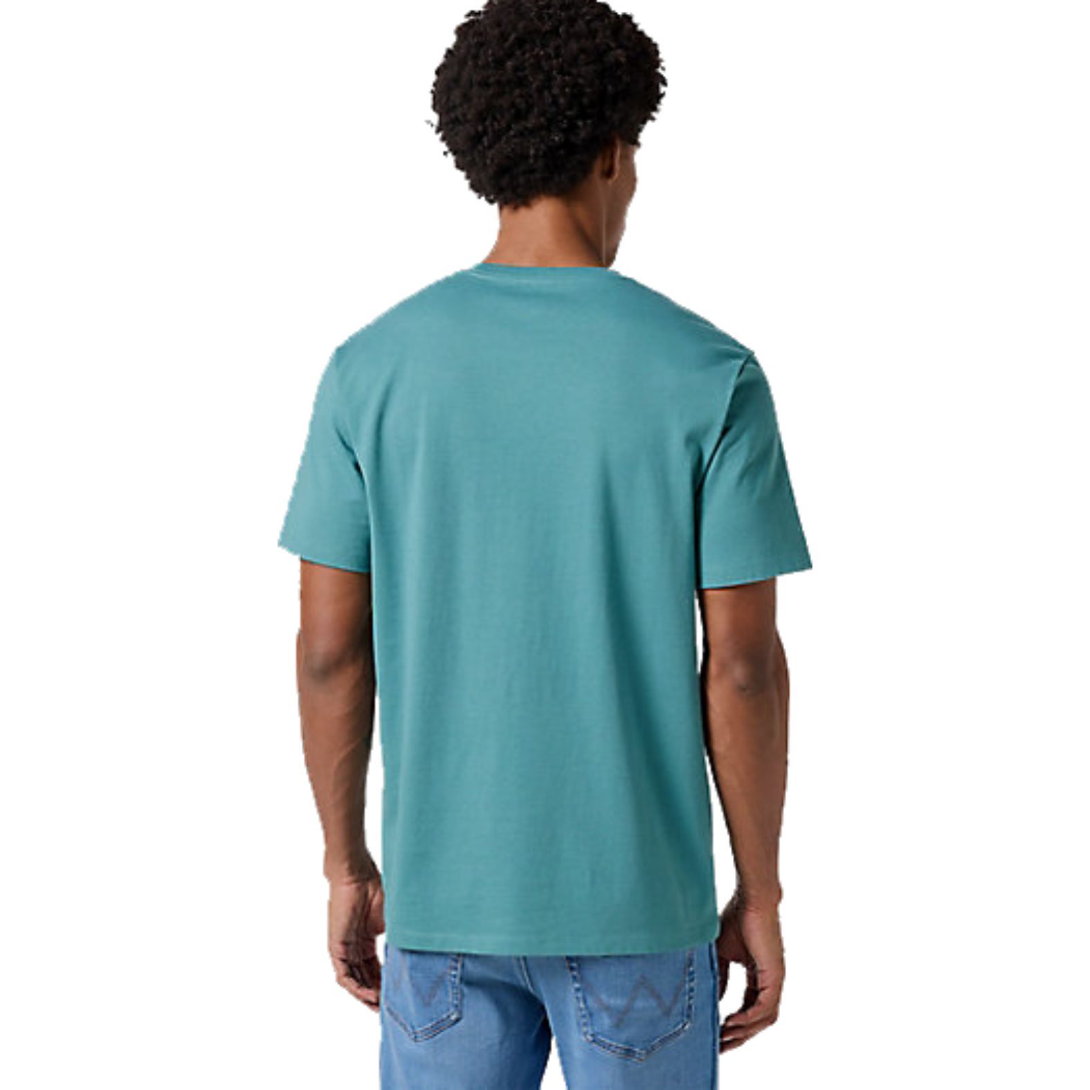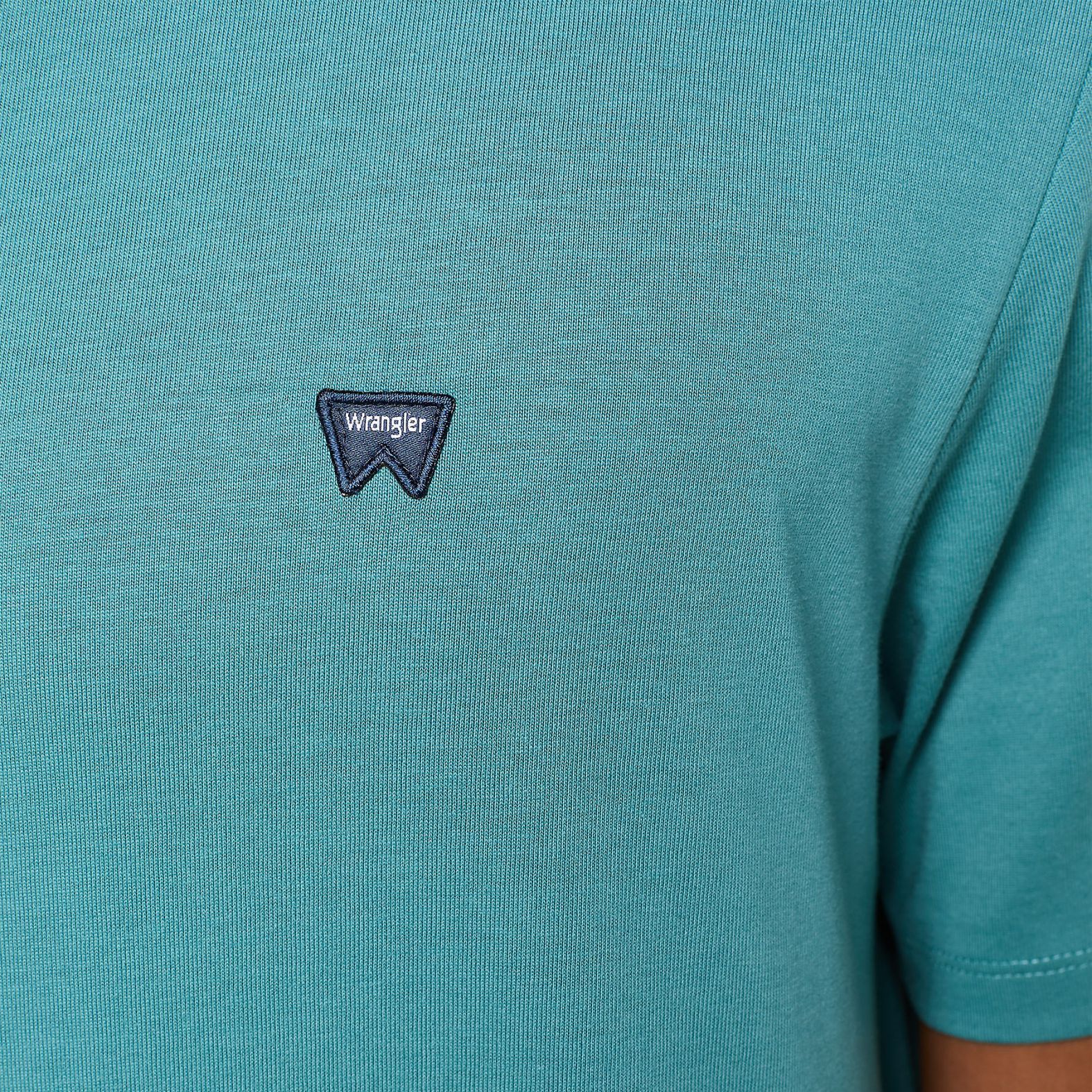 A Wrangler® Sign Off Tee G Hydro 112350435 a zöld egy különleges hideg árnyalatában pompázik.