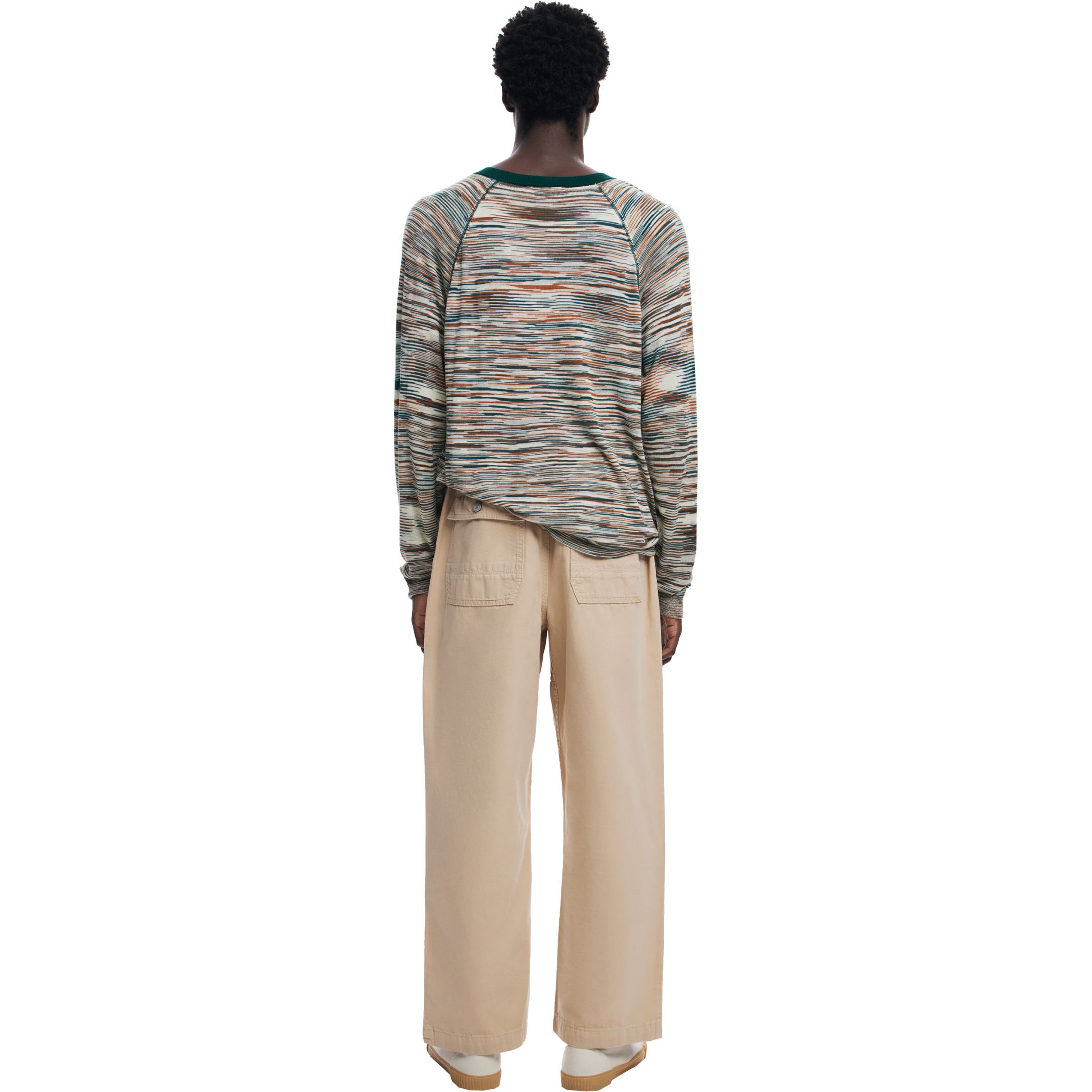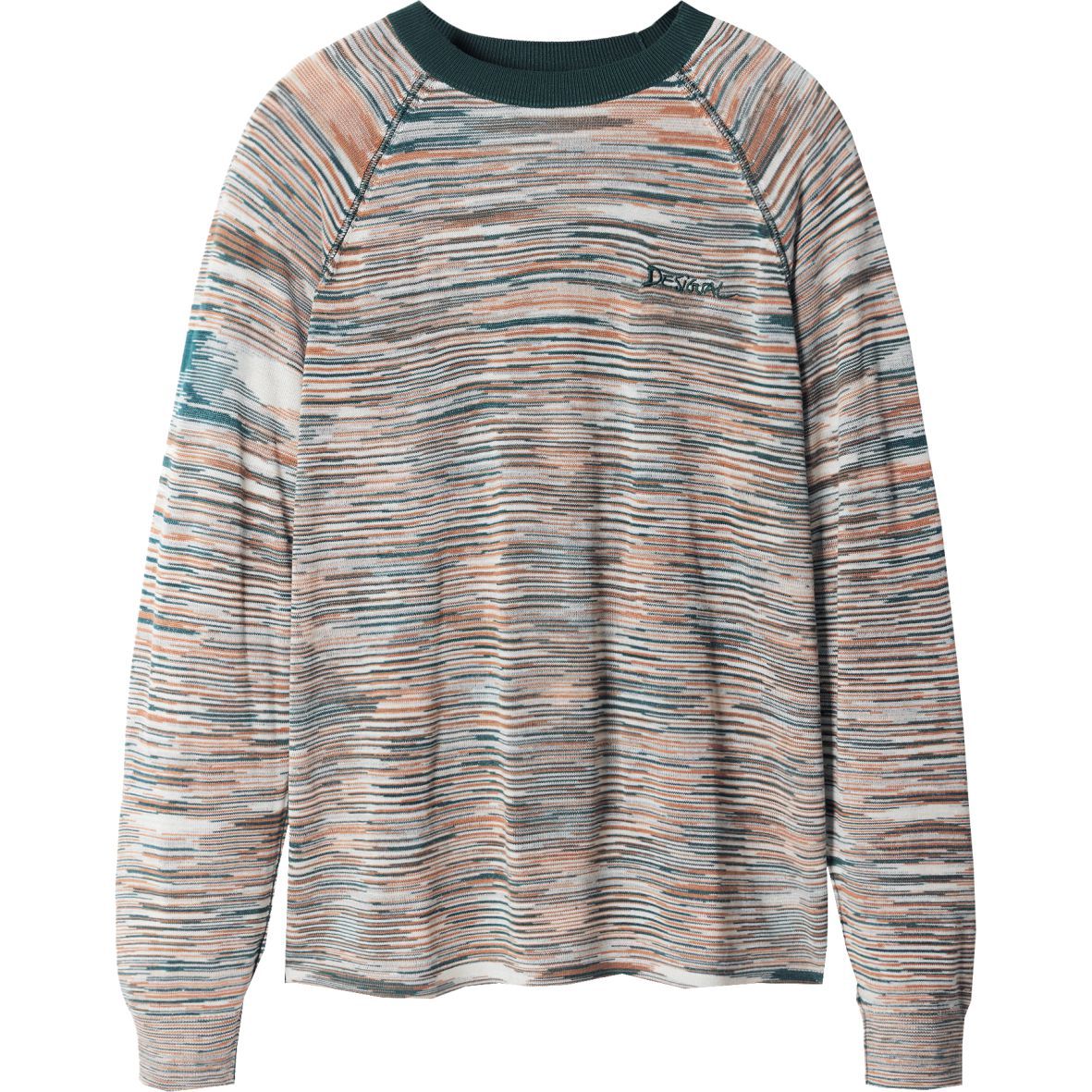 Hosszú ujjú kötött póló kerek nyakkal és színes márvány hatású mintával.