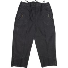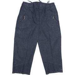 Bármilyen korosztály számára ajánlott, egységesen fekete illetve feketéskék színű (koptatások nélkül készült) női halásznadrág!