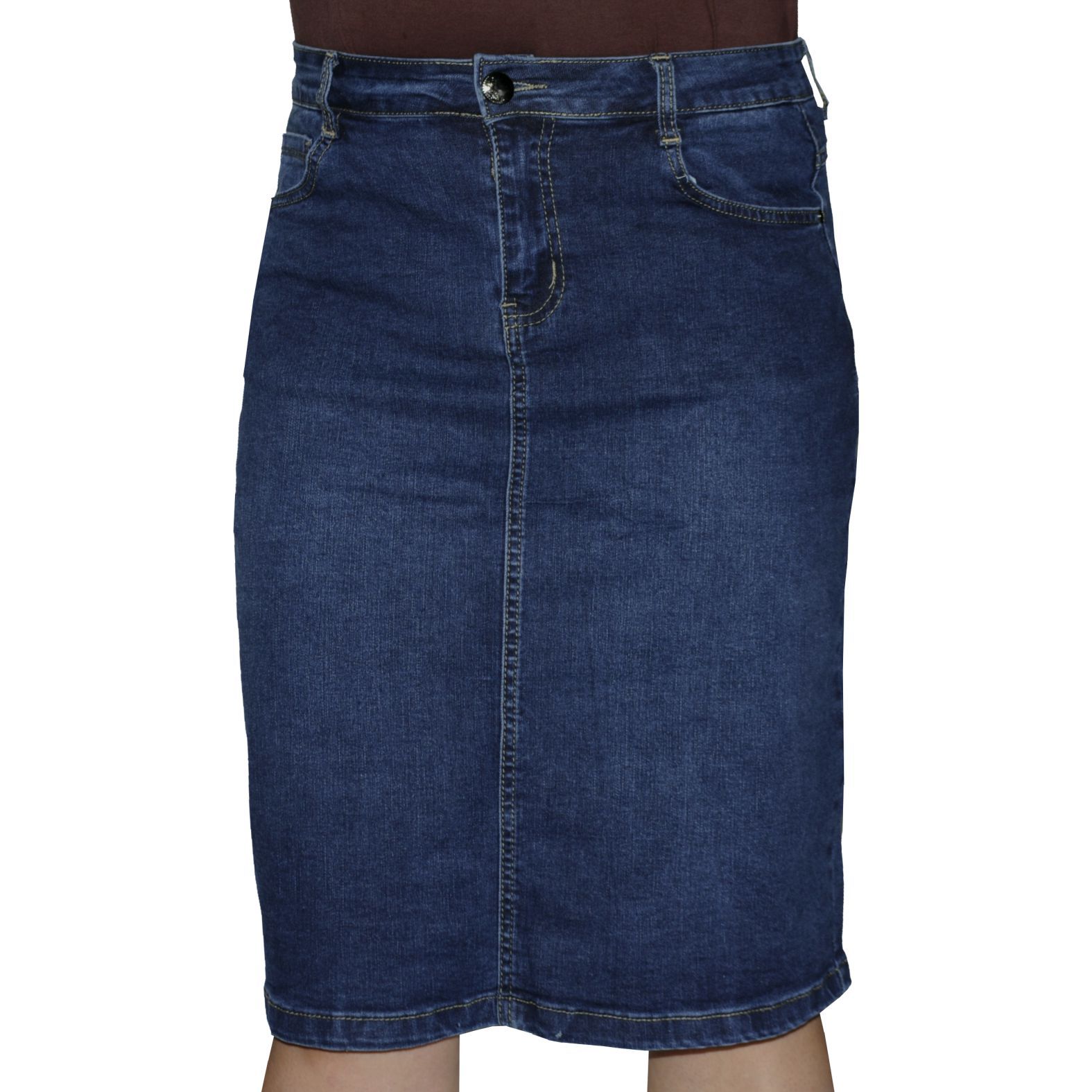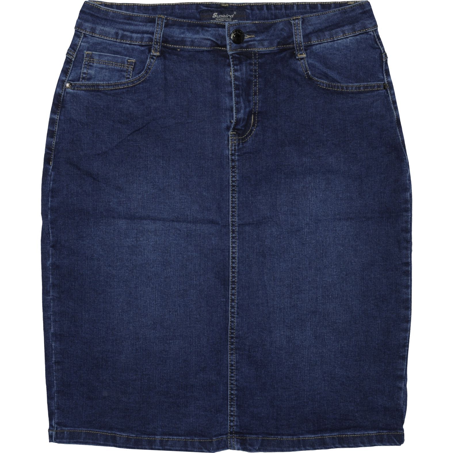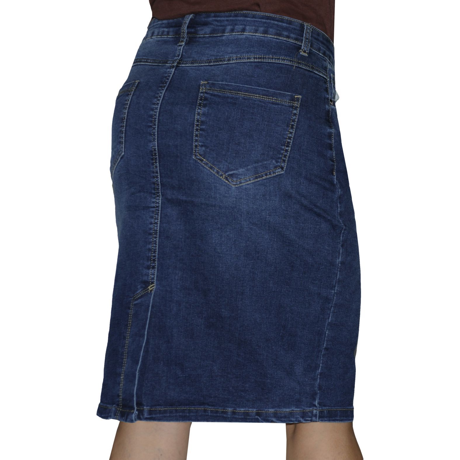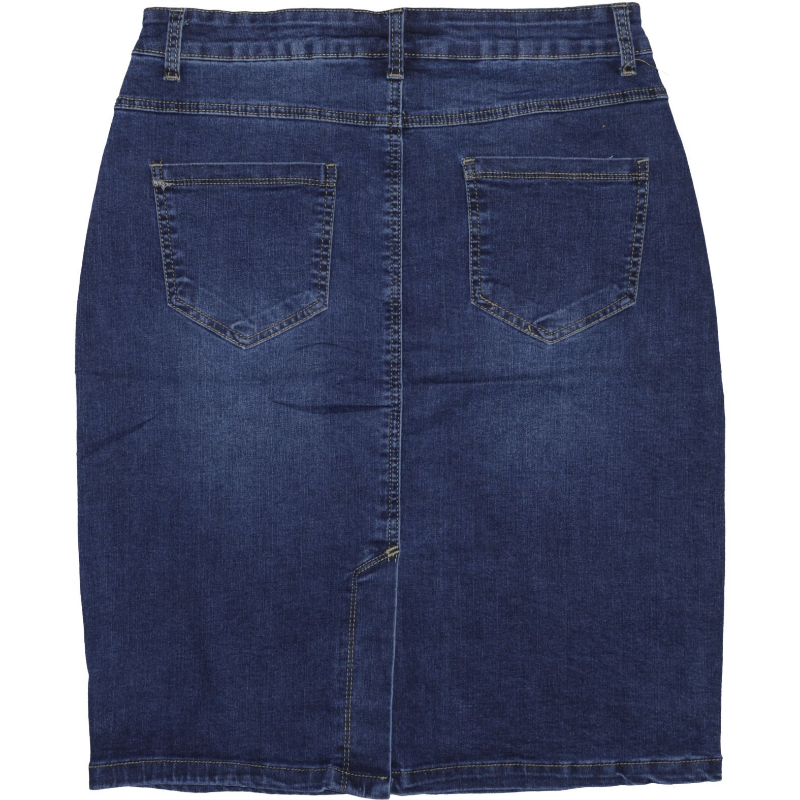 Hagyományos szabásvonalú rugalmas farmer szoknya.